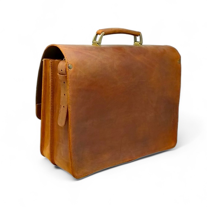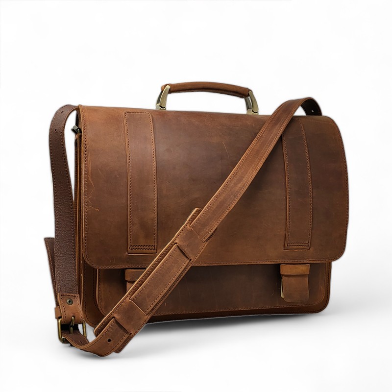 Ce cartable possède une poignée robuste. Une bandoulière amovible en cuir coordonné est fournie dans le sac.