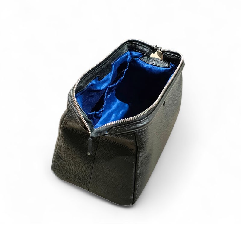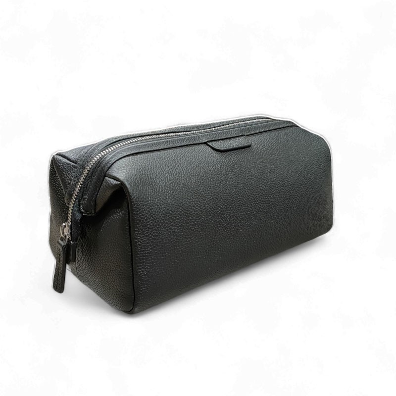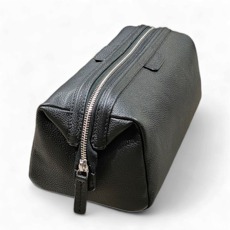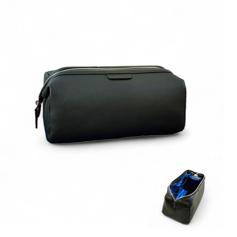 Le Tanneur propose dans la gamme Charles une trousse élégante en cuir grainée. Sa forme originale permet à l'ouverture de rester maintenue lorsque vous rangez ou cherchez vos accessoires. De charques côté se trouvent des poches plates pour loger des petits objets comme une pince, des cotons ... La volume de ce modèle vous permettra de loger facilement le nécessaire de rasage, crème, tube et flacon.