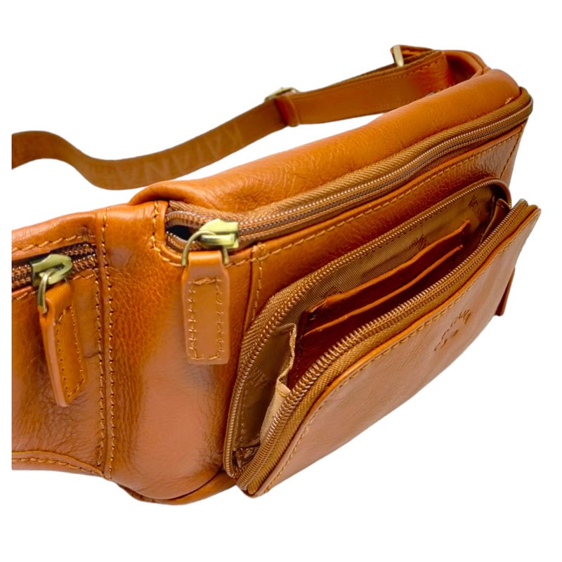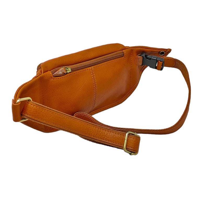 Le sac banane et sa ceinture sont en cuir véritable doublé de tissu. la ceinture est réglable jusqu'à 130 cm de tour de taille. De plus, le fermoir est protégé et donc sécurisé par une patte en cuir qui revient dessus avec une pression.