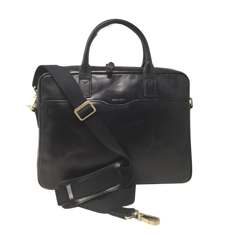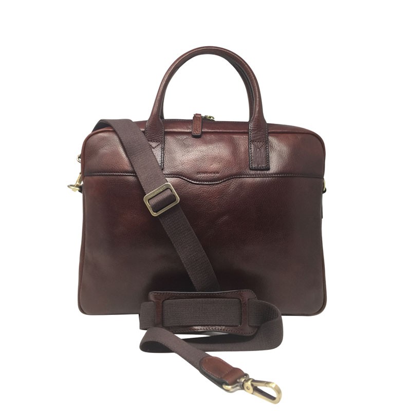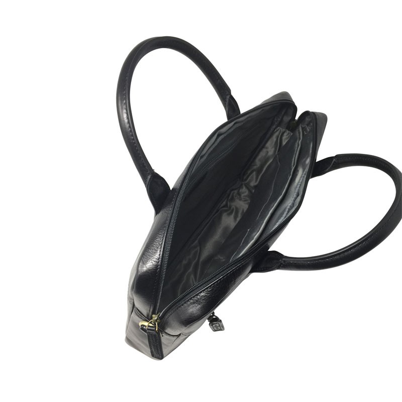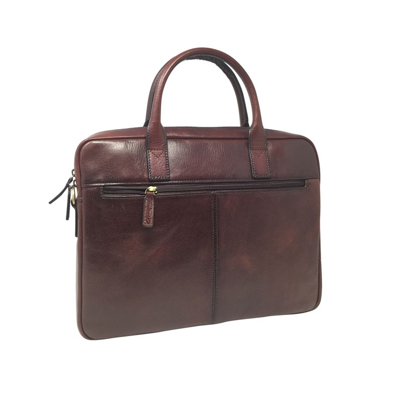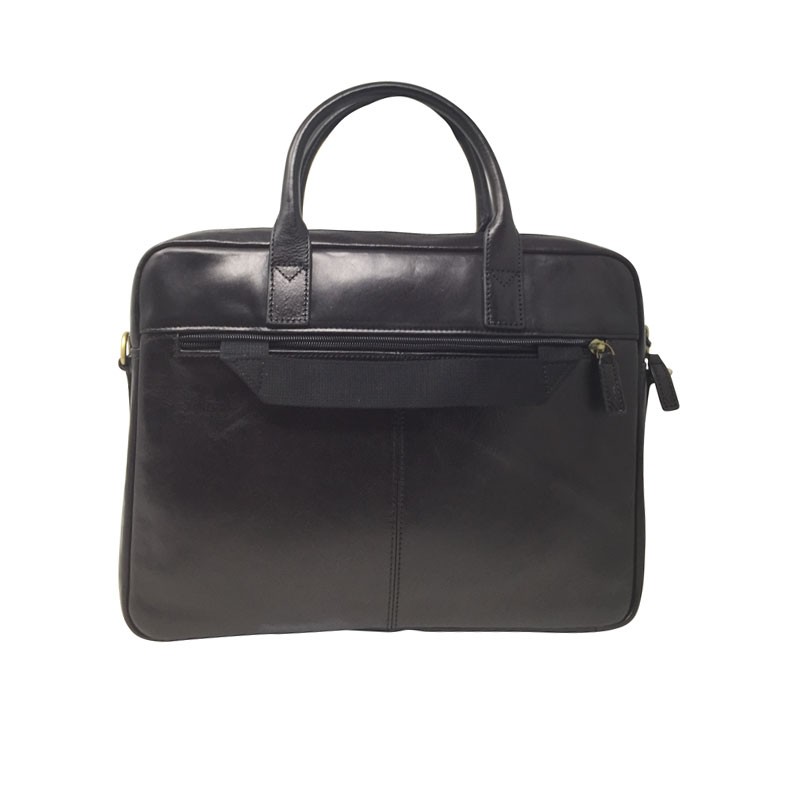 Voici le porte document fin de petite taille 36 cm. Peu encombrant il possède un emplacement de protection d'un PC portable, ainsi qu'une poche plate zippée et deux poches plates ouvertes. Au dos se trouve également une poche zippée dans laquelle se cache la bande de maintien sur une valise trolley.