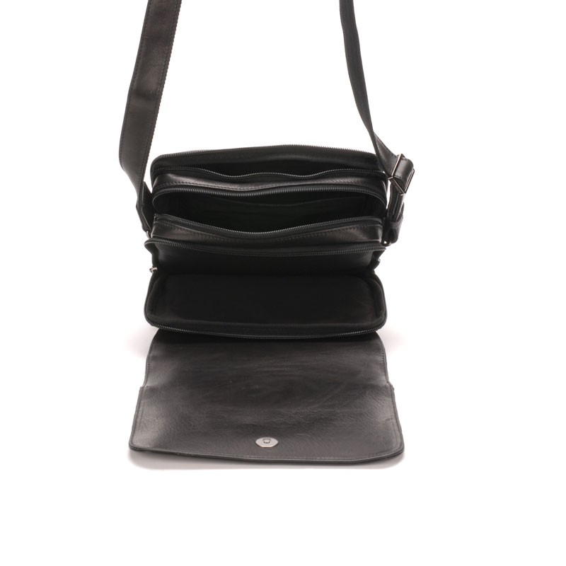 Composée de trois compartiments et de nombreuses petites poches astucieuses, vous allez pouvoir ranger tout ce dont vous souhaitez. Le premier compartiment est une poche simple. Le second compartiment qui est plus large que les deux autres, possède une petite poche pour votre smartphone ainsi qu'une poche plate zippée. Le troisième compartiment est renforcé pour accueillir votre tablette. Il y a également des poches plates zippées à l'avant sous le rabat et au dos de la sacoche.
