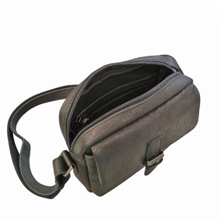 Bandoulière : Bandoulière réglable, non amovible, en cuir doublé toile