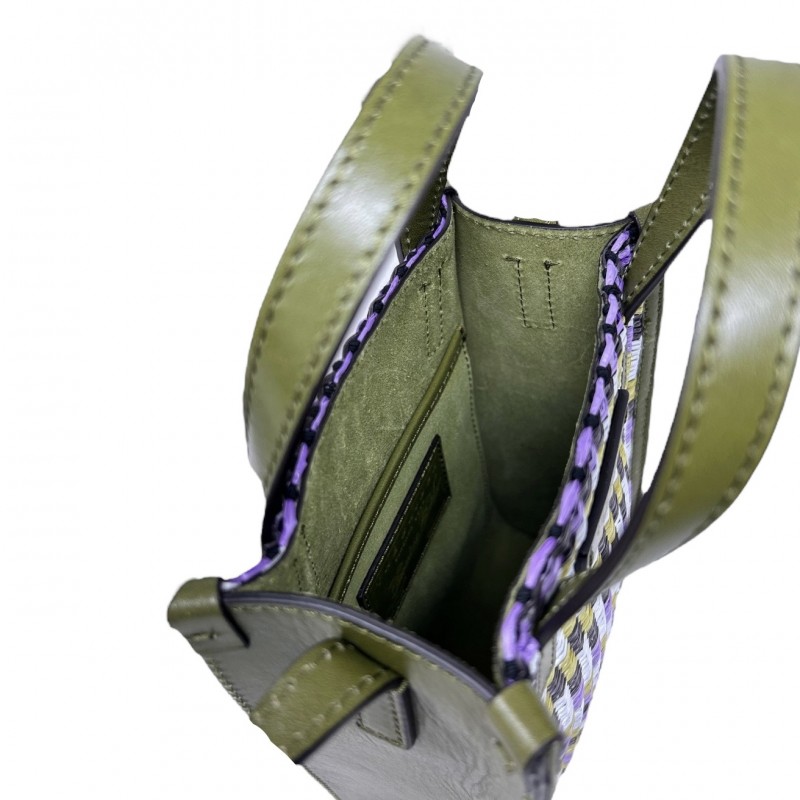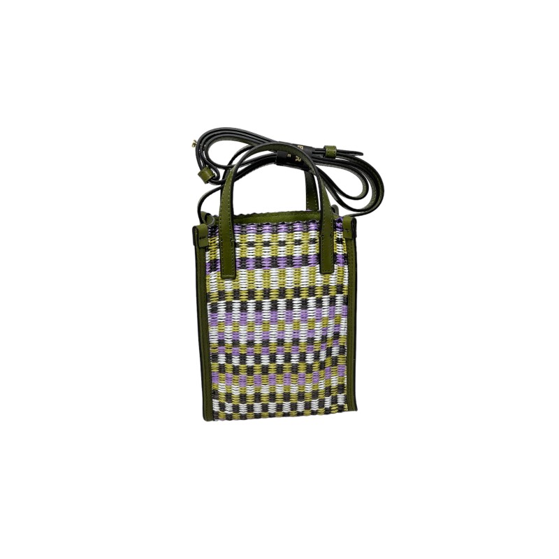 Le modèle MIRRA existe en cuir marron ou vert au prix de 195€ mais également en cuir et raphia lilas au prix de 165€