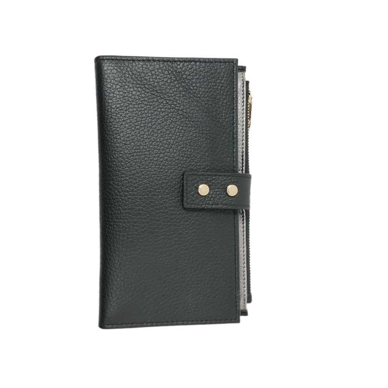 Nombre d'emplacements : 29 emplacements pour les cartes de crédit ou fidélité. 1 emplacement pour la carte d'identité. 4 rangements plats. 1 rangement pour le chéquier . 2 poches zippées.