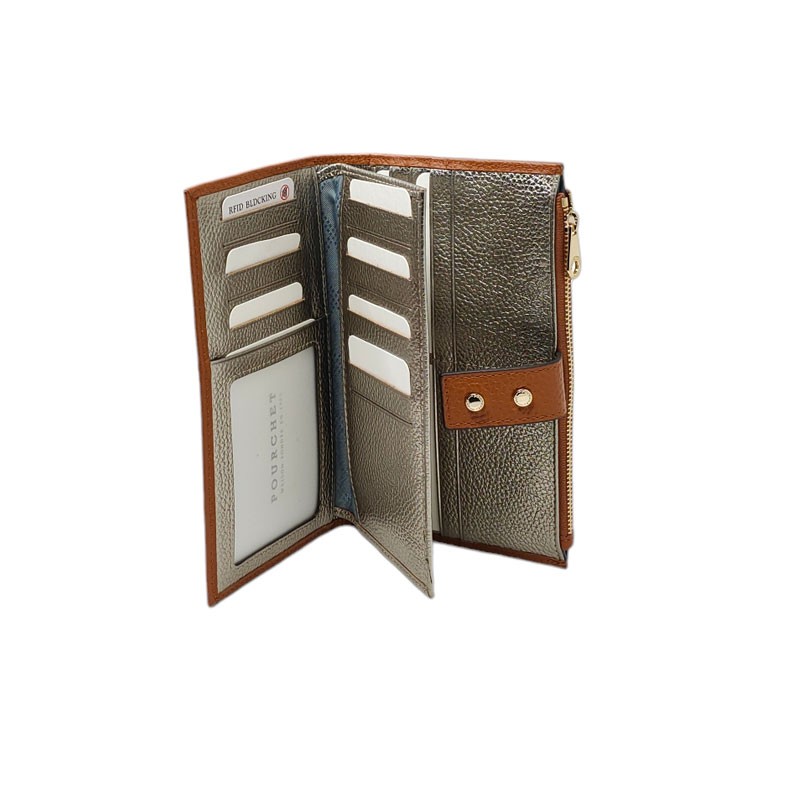 Vous allez pouvoir y mettre, jusqu'à 29 cartes de crédit et de fidélité, le chéquier, les papiers d'identité ainsi que vos billets et votre monnaie. Ce tout-en-un POURCHET est équipé d'une protection RFID, c'est un système qui protège votre carte de crédit du sans contact.