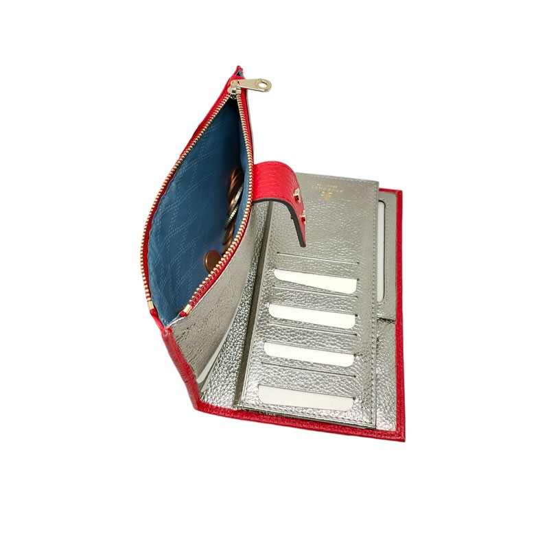 Nombre d'emplacements : 29 emplacements pour les cartes de crédit ou fidélité. 1 emplacement pour la carte d'identité. 4 rangements plats. 1 rangement pour le chéquier . 2 poches zippées.