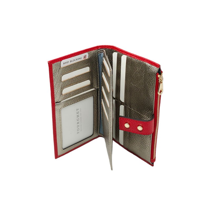 Vous allez pouvoir y mettre, jusqu'à 29 cartes de crédit et de fidélité, le chéquier, les papiers d'identité ainsi que vos billets et votre monnaie. Ce tout-en-un POURCHET est équipé d'une protection RFID, c'est un système qui protège votre carte de crédit du sans contact.