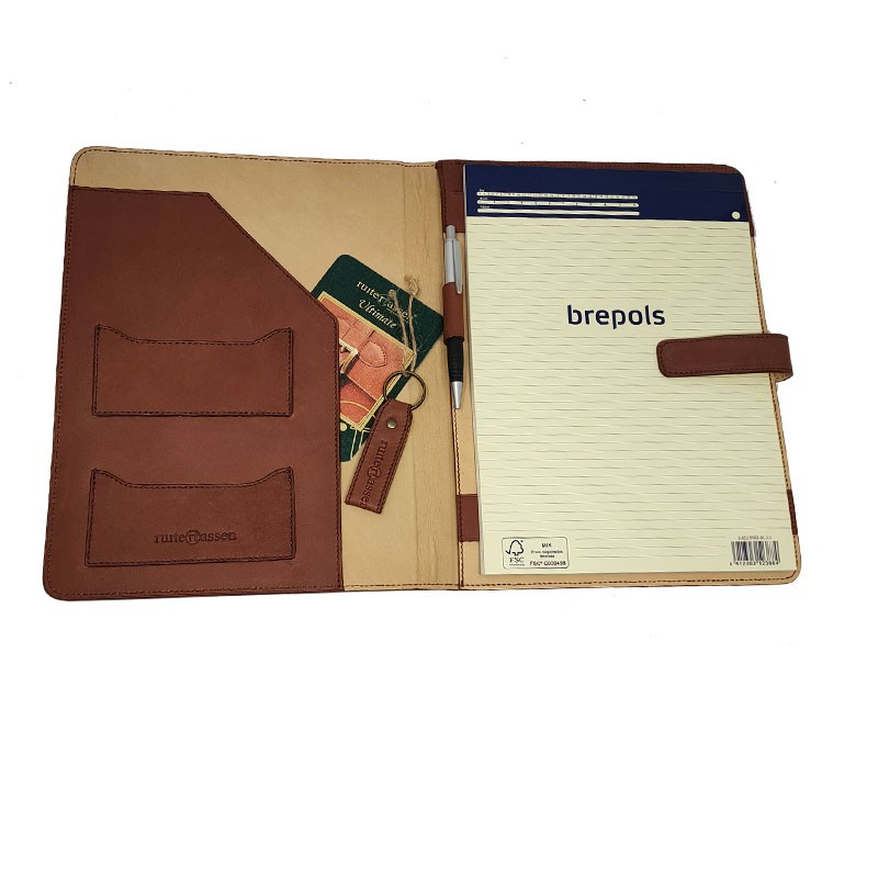 Voilà un conférencier sobre et délicat. Vos doigts aimeront ce cuir d'une très belle qualité. Une fois la réunion terminée, vous refermerez la patte avec satisfaction !