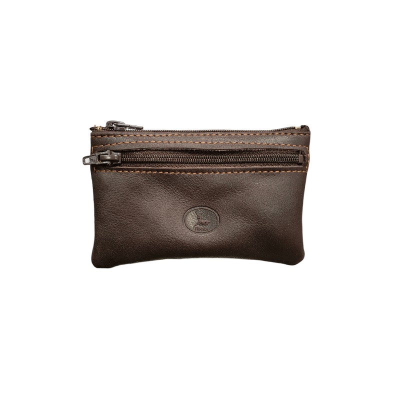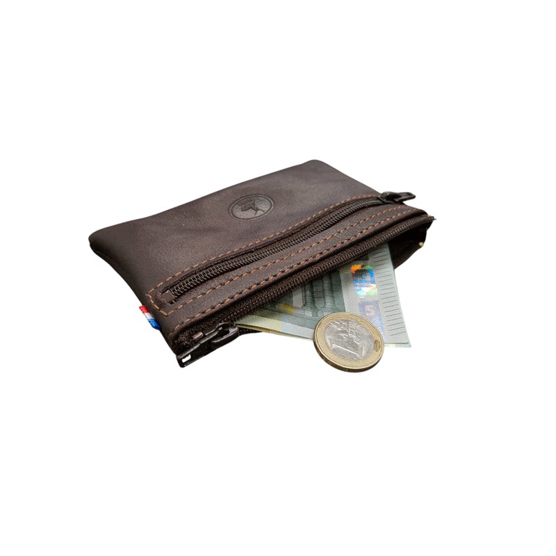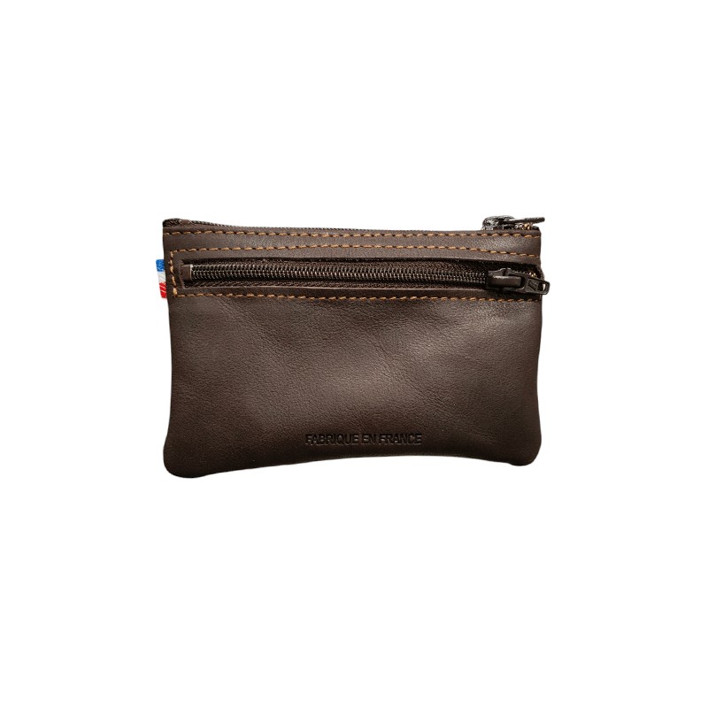 Ce porte pièces possède une ouverture zippée sur le dessus, vous trouverez également deux poches plates zippées sur chaque côté de ce modèle Frandi. D'un côté zippé une carte de crédit se glissera facilement, puis de l'autre côté zippé vos billets pliés trouveront place facilement .