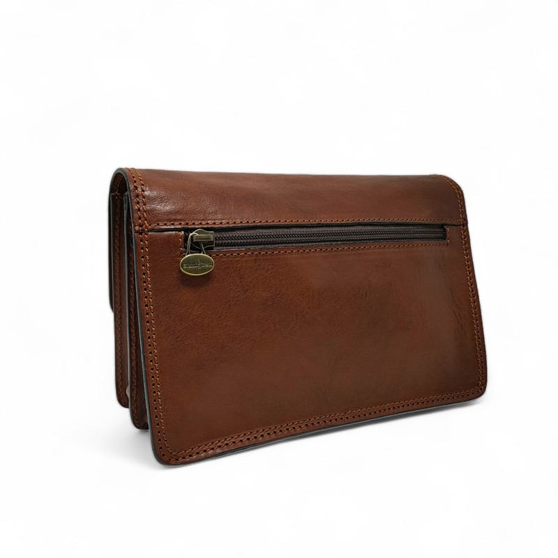D'une allure simple et sobre, il sera ultra fonctionnel grâce à ses nombreux emplacements et poches. Il est composé de deux compartiments (20*13cm) séparés d'une poche plate zippée. Vous trouverez des emplacements pour le rangement de 2 cartes et un stylo. A l'extérieur de chaque côté se trouvent des poches plates zippées. Aussi vous pourrez y ranger le contenu de vos poches : clés, portefeuille, porte-monnaie.