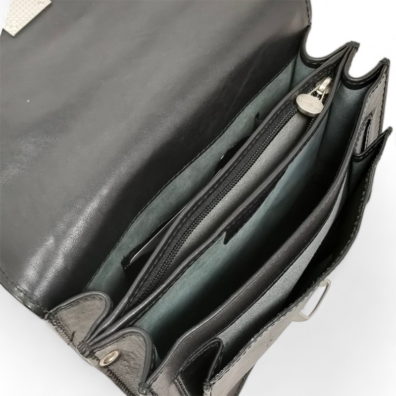 D'une allure simple et sobre, il sera ultra fonctionnel grâce à ses nombreux emplacements et poches. Il est composé de deux compartiments (20*13cm) séparés d'une poche plate zippée. Vous trouverez des emplacements pour le rangement de 2 cartes et un stylo. A l'extérieur de chaque côté se trouvent des poches plates zippées. Aussi vous pourrez y ranger le contenu de vos poches : clés, portefeuille, porte-monnaie.