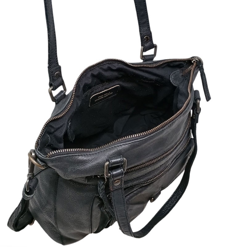 Le sac Gianni Conti se distingue par son organisation fonctionnelle et ses multiples poches pour un rangement optimisé. À l'avant, il possède trois poches pratiques, deux poches zippées idéales pour les petits objets que vous souhaitez garder à portée de main en toute sécurité. Une poche fermée avec rabat et fermeture magnétique, parfaite pour des objets un peu plus volumineux ou des effets personnels que vous souhaitez protéger tout en ayant un accès facile. À l'arrière, une poche zippée supplémentaire permet de ranger des objets que vous souhaitez garder à l'écart mais toujours facilement accessibles, comme des documents importants.