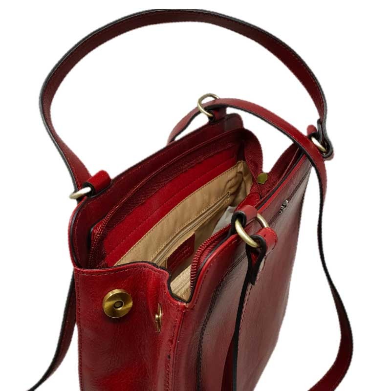Découvrons l'intérieur qui est compartimenté et facilitera votre rangement. Le premier compartiment possède deux poches plates pour votre smartphone et vos clefs. Le second compartiment possède une poche plate zippée pour sécurisé pour portefeuille ou porte-monnaie. La cloison qui sépare les deux compartiments est une grande poche zippée. Au dos du sac, il y a également une poche zippée pour attraper ce dont vous avez besoin rapidement comme un titre de transport ou un ticket de parking.