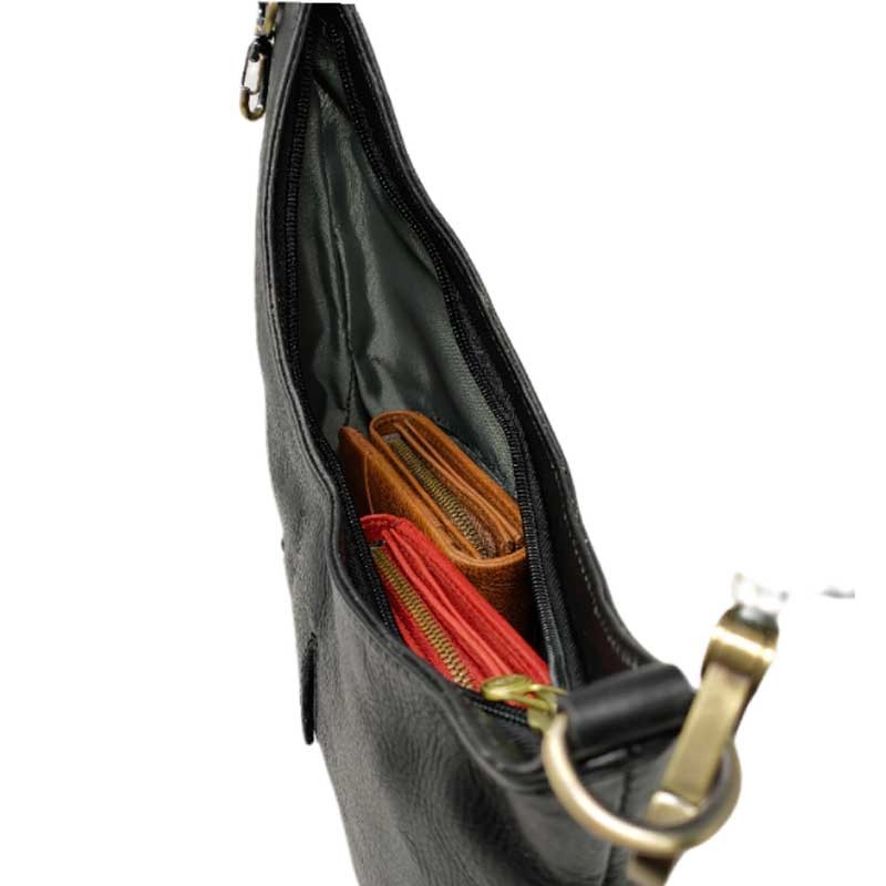 Ce sac KATANA est facile et agréable à porter grâce à sa bandoulière en toile coton et cuir qui est réglable par une boucle coulissante pour un porté court sur l'épaule ou plus long en travers.