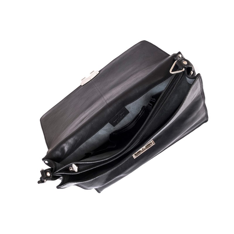 Ce cartable possède deux larges compartiments : dans un premier compartiment vous aimerez les emplacements pour vos cartes ainsi que les deux emplacements pour vos stylos, vous y glisserez le format pochette A4. Le second compartiment sera parfait pour y glisser d'autre dossiers, une petite bouteille d'eau ainsi que votre porte feuille ou autre affaire personnelles. Ces deux compartiments sont séparés par une poche centrale zippée.