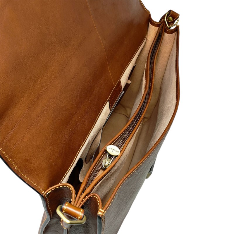 Cette sacoche Gianni Conti en cuir dispose d'une poignée  renforcée très confortable. Elle se portera à l'épaule ou de travers grâce à sa large bandoulière amovible et réglable.