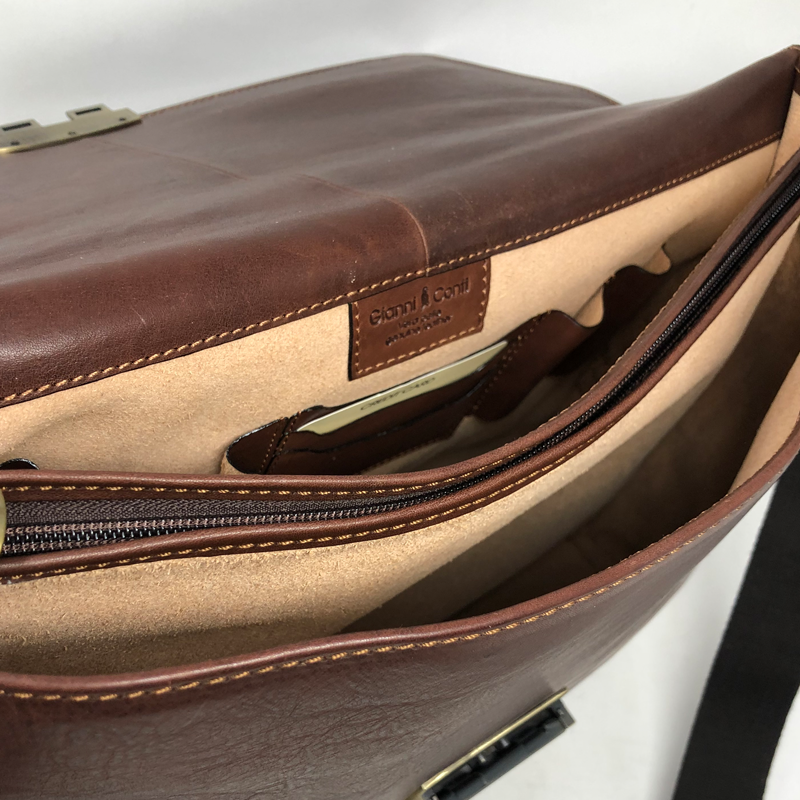 Vous appréciez sans aucun doute la qualité du cuir de cette sacoche :Gianni CONTI est reconnu pour ce type de cuir au tannage végétal mat. Le toucher est agréable et massif.