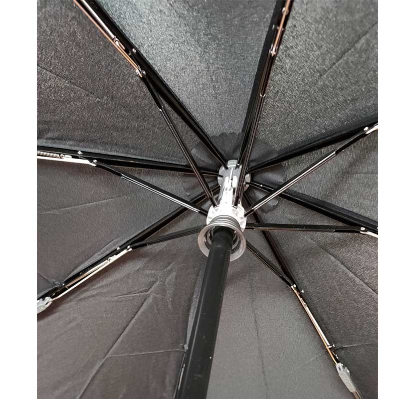 C'est un parapluie avec une monture renforcée en fibre de couleur noir comprenant 8 baleines. La toile est en polyester. L'ouverture est duomatique . Sa poignée crosse est en plastique noir avec un élégant effet gomme. Cela assure une bonne prise en main pour vos trajets de tous les jours