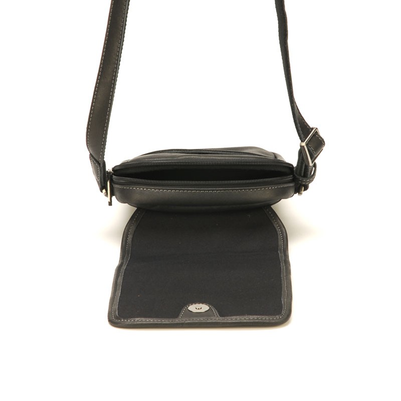 A l'intérieur, il possède une petite poche plate zippée. A l'avant sous le rabat, il y a une poche plate. Sur le rabat, vous trouverez une poche plate zippée qui vous sera utile pour attraper ce dont vous avez besoin rapidement comme un titre de transport ou un ticket de parking. Au dos de la sacoche, se trouve également une petite poche plate zippée.