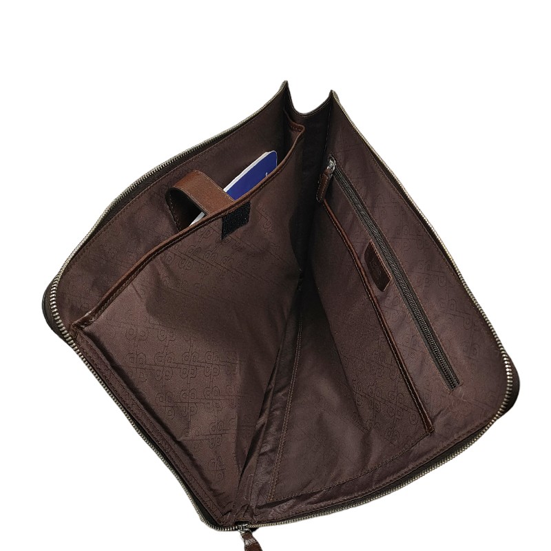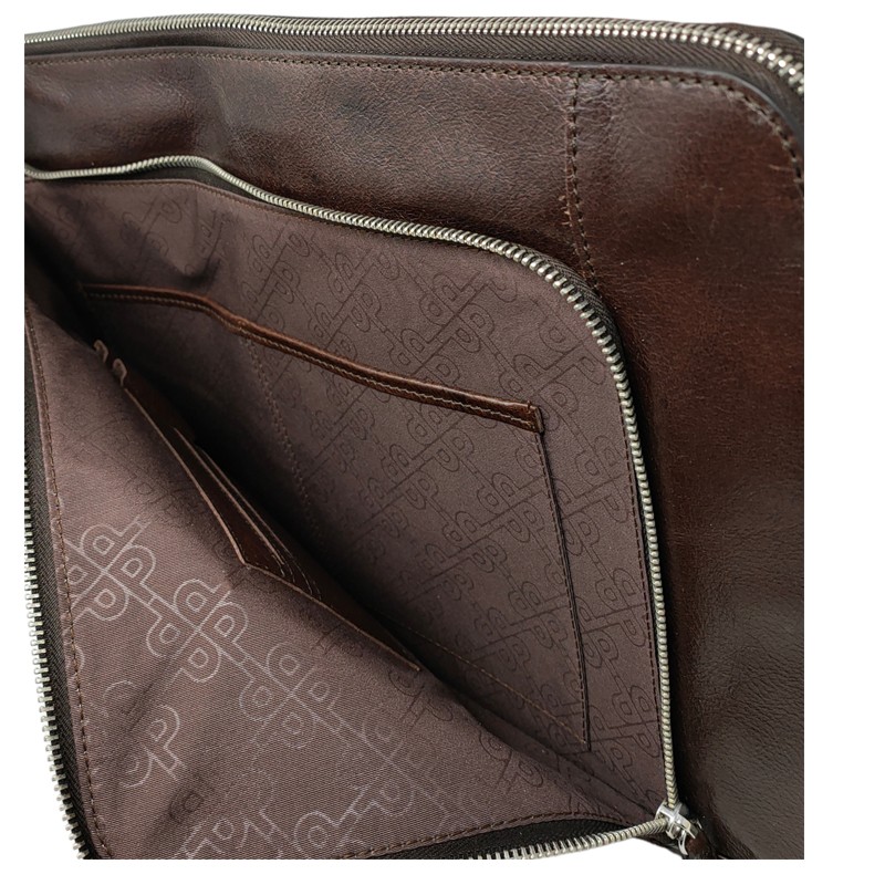 Il possède une poche zippée à l'avant avec des aménagements pour les stylos, les cartes de visite ainsi qu'un emplacement pour votre téléphone. La poche principale peut accueillir votre ordinateur ou votre tablette ainsi que vos dossiers. La poche arrière zippée peut être utile pour vos clés, votre portefeuille et la bande de cuir est un passant trolley qui sert à mettre votre porte-documents sur le manche d'une valise et qui vous sera pratique lors de vos voyages ou déplacements professionnels.