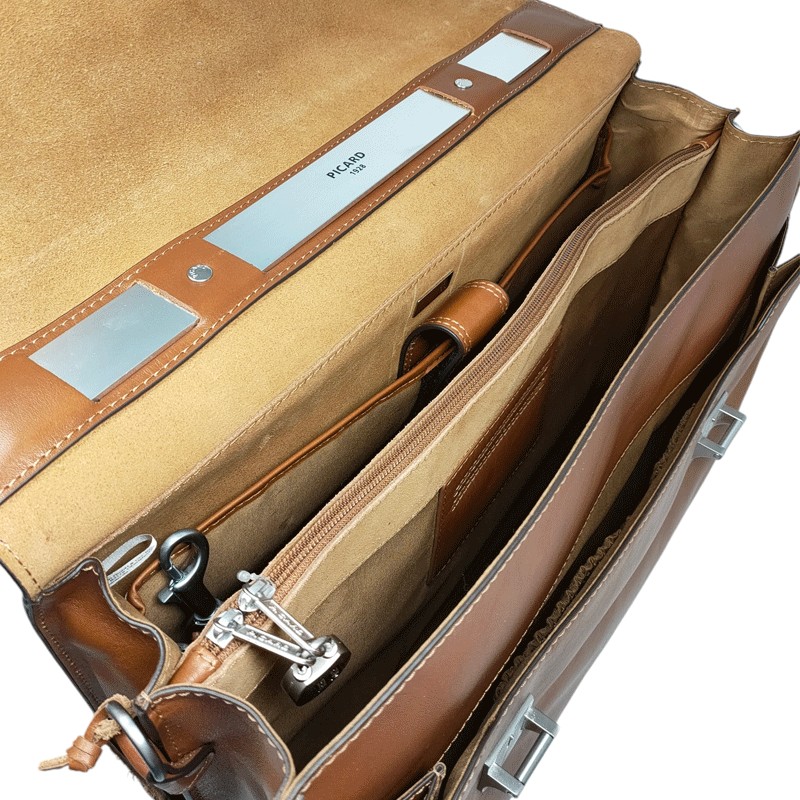Le cuir rigide confère à cette sacoche PICARD un excellent maintient "debout" de vos papiers et dossiers. Vous retrouvez aisément les documents lors de vos rendez vous professionnels