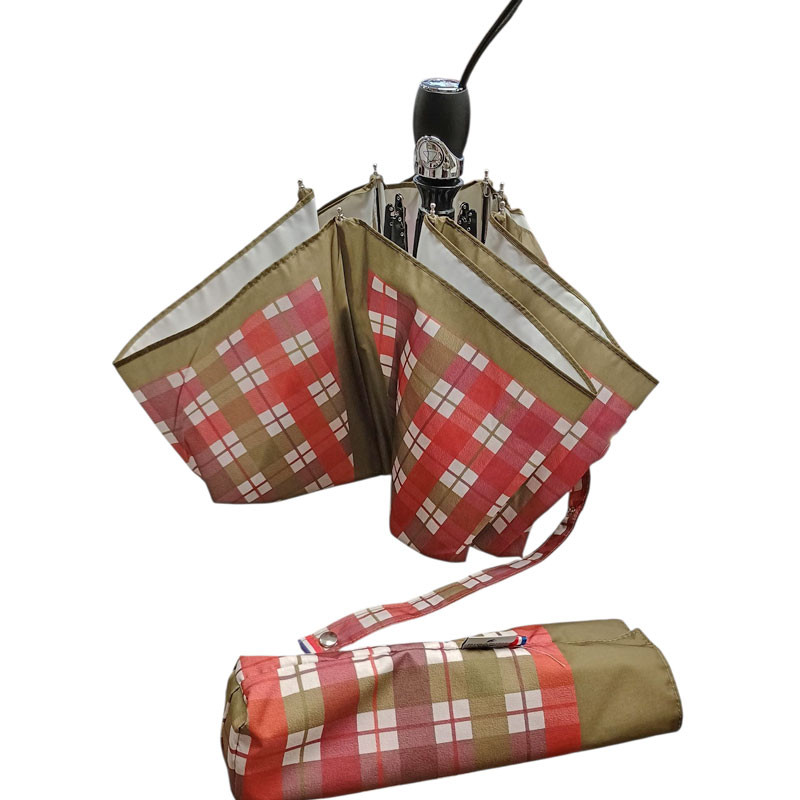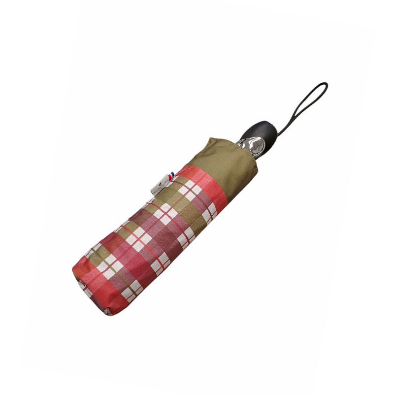 Celui ci est d'une ouverture automatique . Le parapluie se range dans son étui en tissus coordonné. On remarque également la jolie poignée façon cuir avec la dragonne élastiquée.