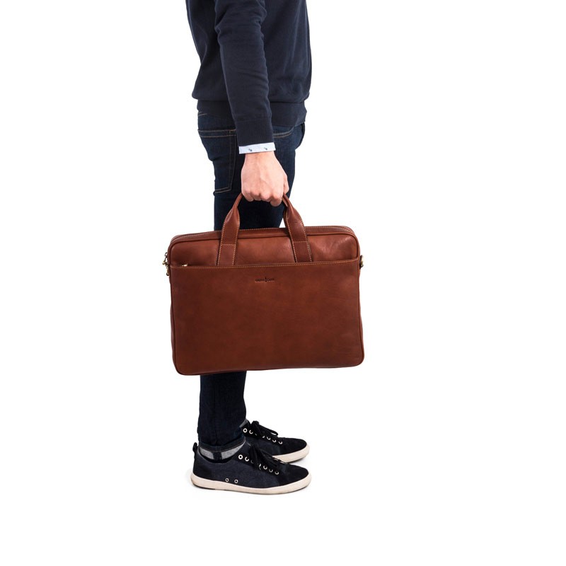 Ce porte documents est idéal porté à la main , les poignées sont confortables. Il possède une large bandoulière en toile qui sera pratique en voyage ou à vélo !