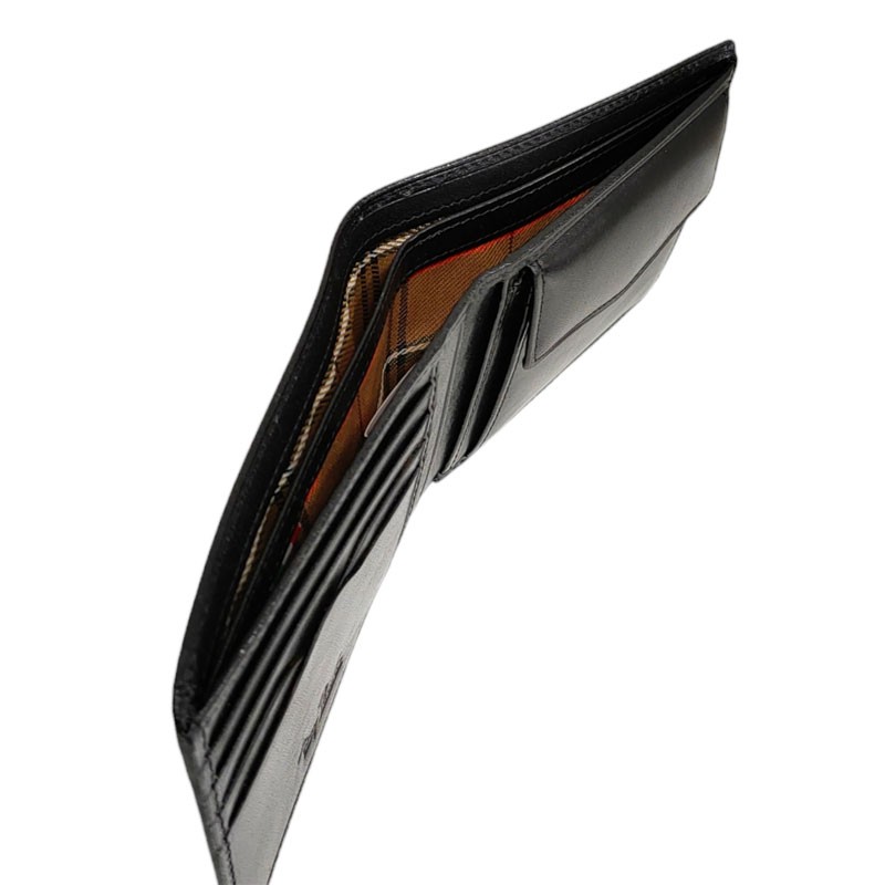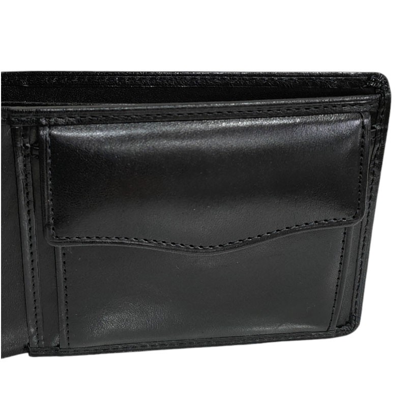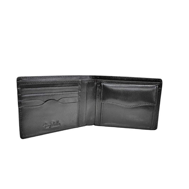 A l'intérieur on découvre une poche à pression pour la monnaie, 2 poches pour les billets, 4 emplacements pour les cartes de crédit et 3 emplacements plats pour les papiers d'identité.