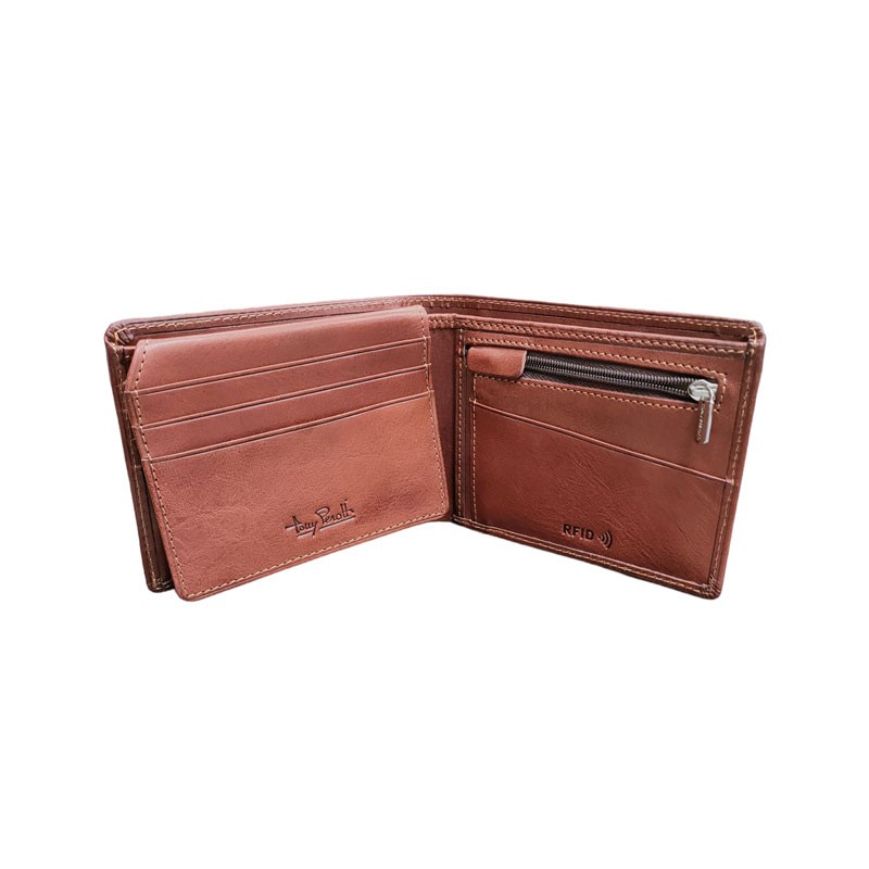 A l'intérieur on découvre une poche zippée pour la monnaie, 7 emplacements pour les cartes, deux poches pour les billets, un emplacement avec vue et 4 poches plates pour les papiers d'identité. Ce portefeuille Tony PEROTTI protégera vos cartes bancaire du sans contact, il est RFID