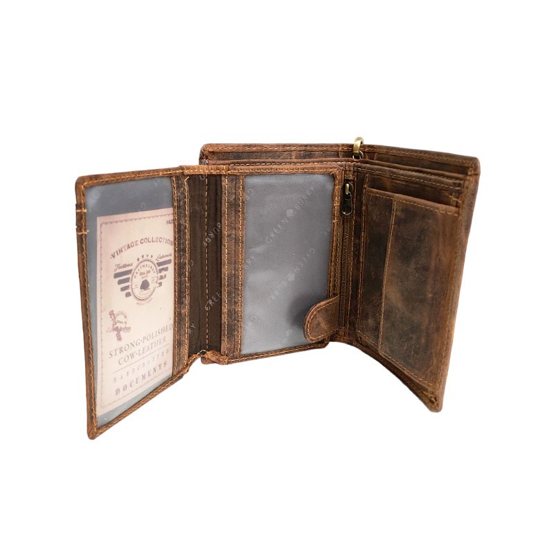 Ce beau portefeuille GREENBURRY possède de nombreux rangements pour une organisation optimale. En l'ouvrant, on découvre une poche à pression pour la monnaie sur la partie droite. Sous cette poche il y a un rangement plat pour vos papiers. La partie gauche du portefeuille s'ouvre comme un livre. On découvre qu'il y a 8 emplacements pour les cartes dont 1 avec vue, 2 poches transparentes pour vos photos et 2 poches plates pour vos papiers d'identité. Vous allez encore pouvoir mettre des choses dans la partie zippée, au milieu du portefeuille. Il y a également 3 poches dont une zippée entièrement pour vos billets.