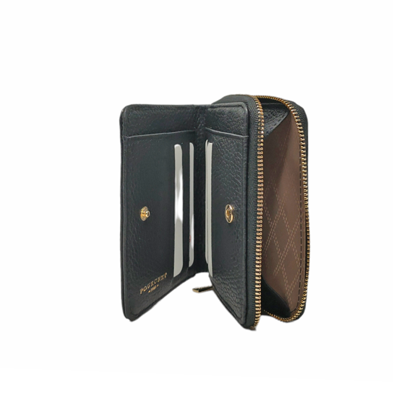 Le maroquinier POURCHET vous présente ce mini portefeuille pour dame. Un modèle de la ligne SPHERE fabriqué en cuir de vachette grainé.