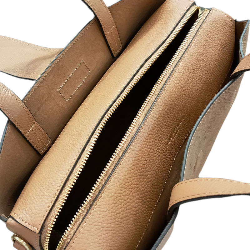 Dans ce compartiment vous trouverez un bel espace pour y mettre toutes vos affaires. Un long portefeuille type compagnon, un téléphone, un parapluie, une petite bouteille d'eau, les clés... Il y a de quoi mettre ! Les deux belles poches de chaque côté sont ouvertes, elles vous seront pratiques pour attraper ce dont vous avez besoin rapidement ou pour y mettre des documents au format A5 ou enveloppes.