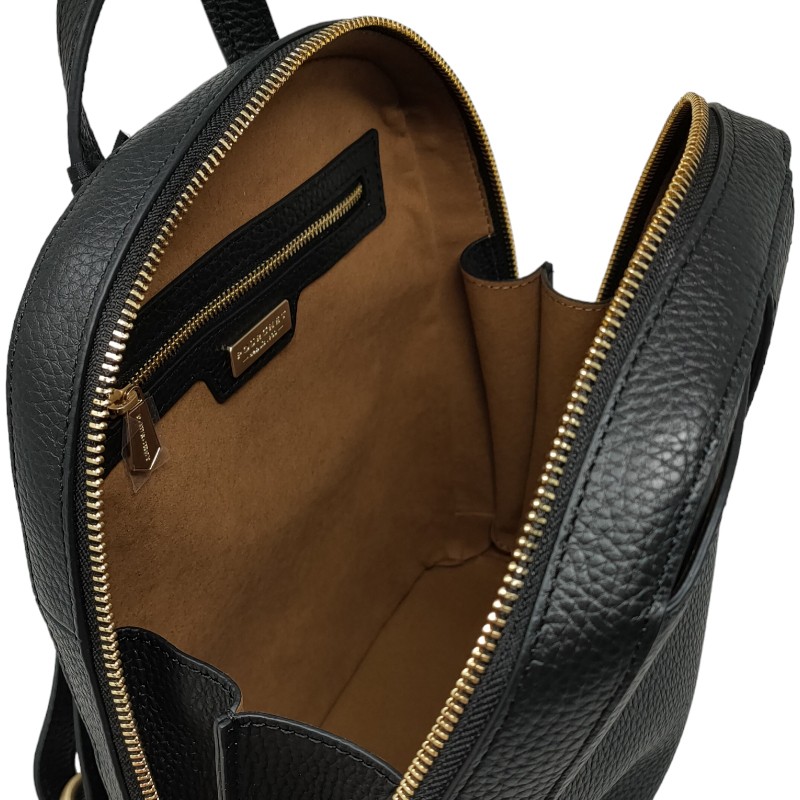 Sur l'avant du sac à dos POURCHET vous trouverez une poche plate qui ferme à l'aide d'une patte large aimanté. Cette poche vous sera pratique pour y mettre votre titre de transport ou votre ticket de parking afin que vous puissiez les attraper rapidement. Le compartiment principal est grand et possède une belle ouverture afin d'avoir une bonne visibilité dans votre sac à dos. A l'intérieur on découvre une jolie doublure en alcantara. Vous y logerez facilement un grand portefeuille ou un compagnon, un parapluie, une petite bouteille d'eau, vos clés, un agenda. La petite poche plate pourra accueillir votre téléphone. La poche plate zippée pourra contenir votre carte bancaire afin qu'elle soit en sécurité.