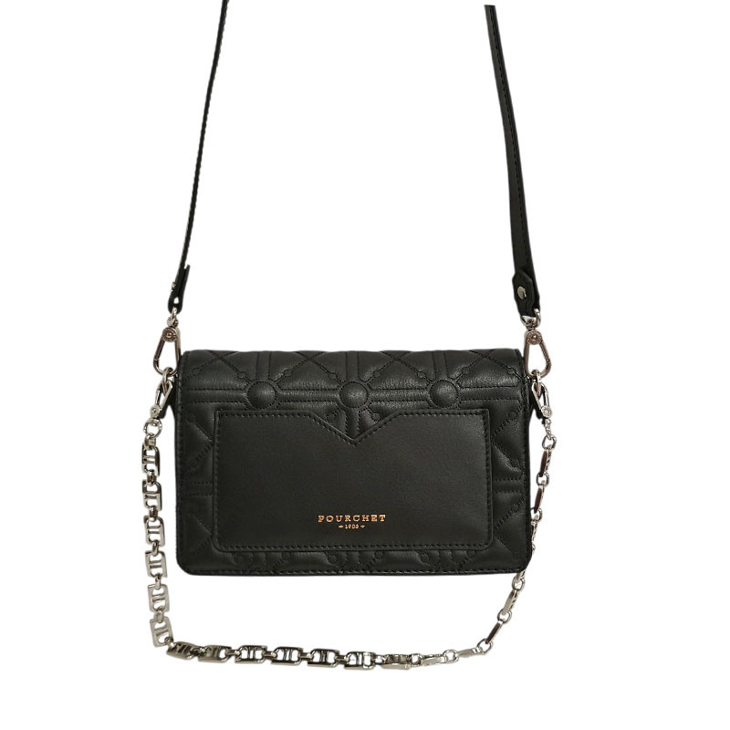 Élégant et raffiné, ce petit sac Pourchet façon pochette est l’allié parfait de vos tenues, du matin jusqu’au soir. Conçu avec un cuir de vachette matelassé au toucher doux et à la finition soignée, il séduit par son jeu de motifs graphiques intégrés au cuir, pour un rendu à la fois moderne et intemporel. Ce modèle incarne parfaitement le savoir-faire maroquinier de la maison Pourchet.