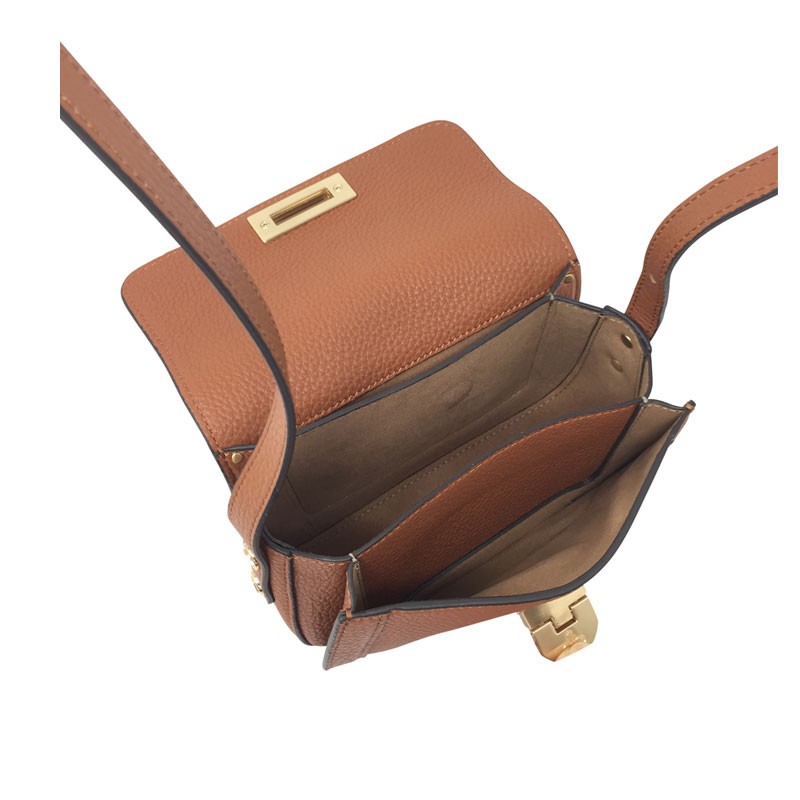 Ce joli modèle à porter en bandoulière se compose d'un grand compartiment pour votre portefeuille, votre téléphone... et de 2 poches moins épaisses de chaque côté de ce compartiment, idéales pour y glisser de petits documents, le tout fermé par un rabat avec un très joli fermoir.  Notez également qu'il y a une poche à l'arrière du sac pour votre titre de transport ou votre ticket de parking.