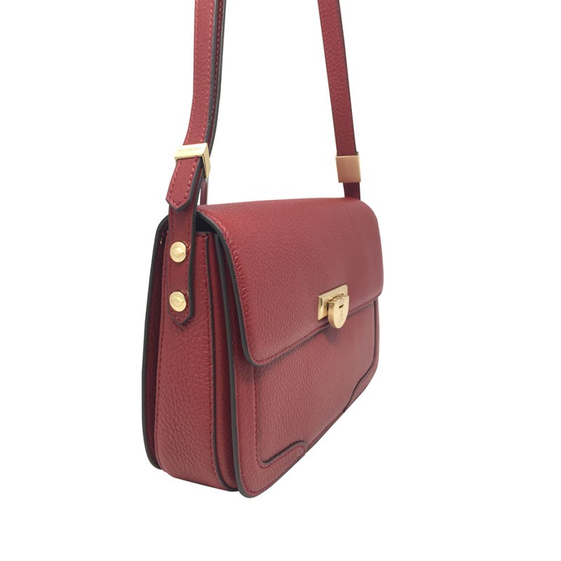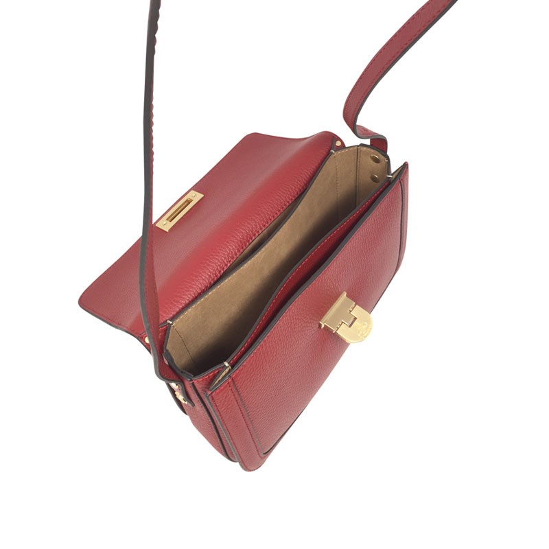 Ce joli modèle à porter en bandoulière se compose d'un grand compartiment pour votre portefeuille, votre téléphone... et de 2 poches moins épaisses de chaque côté de ce compartiment, idéales pour y glisser de petits documents, le tout fermé par un rabat avec un très joli fermoir.  Notez également qu'il y a une poche à l'arrière du sac pour votre titre de transport ou votre ticket de parking.