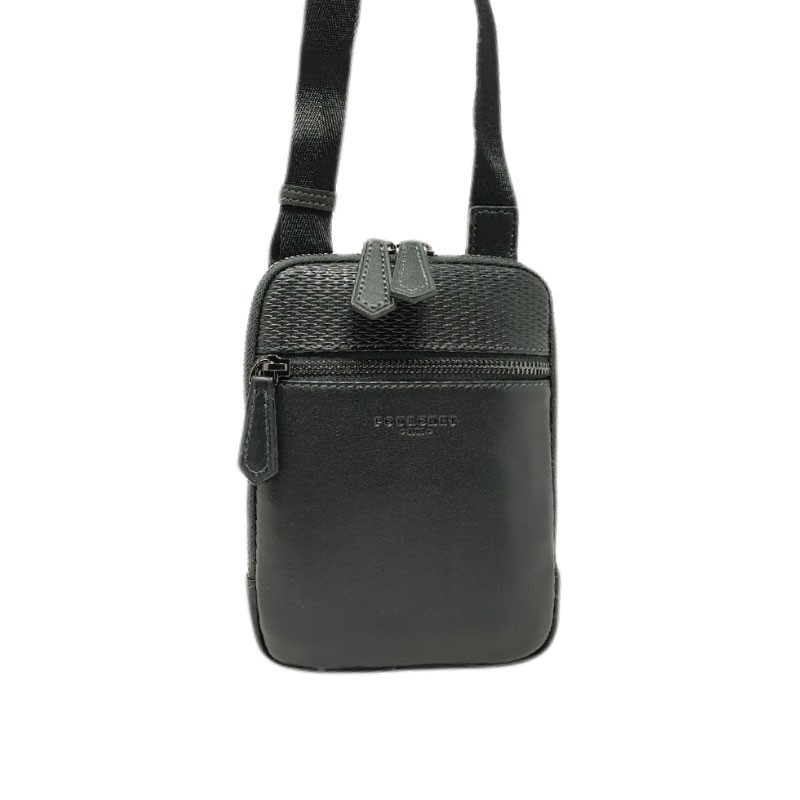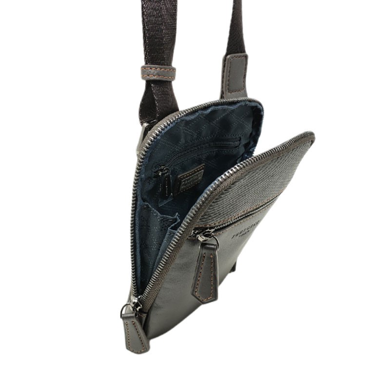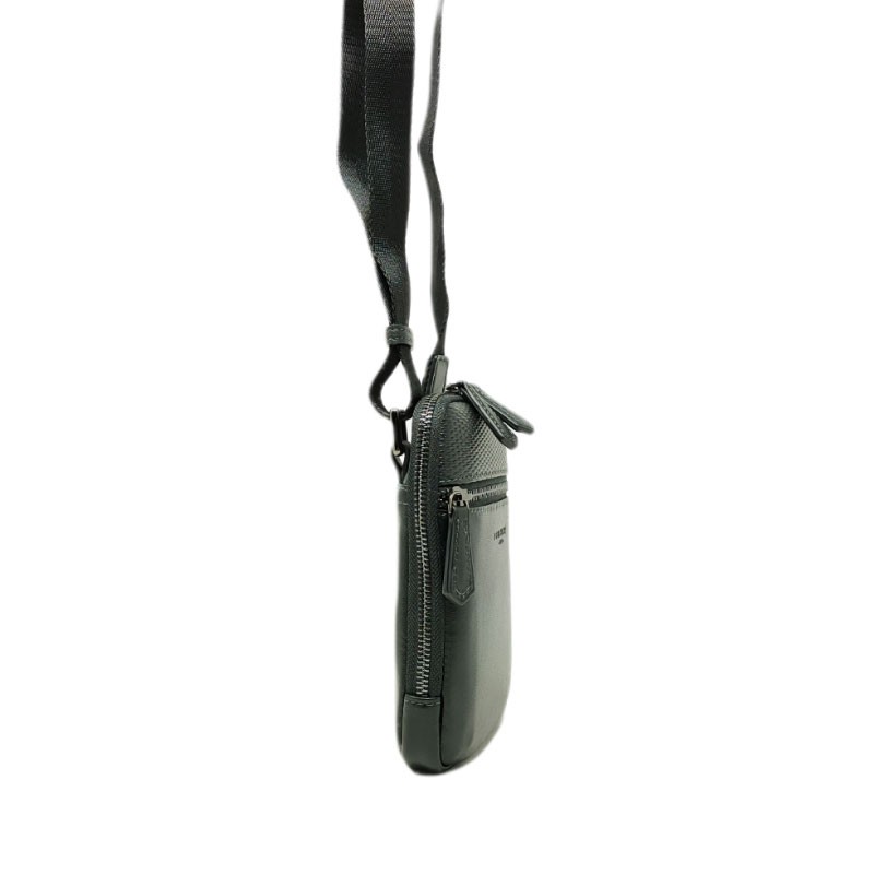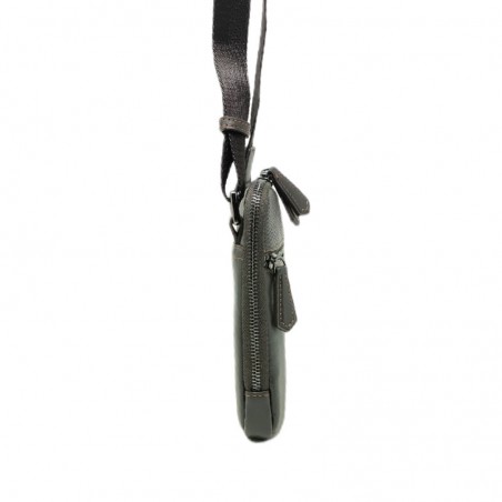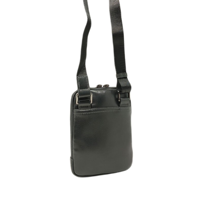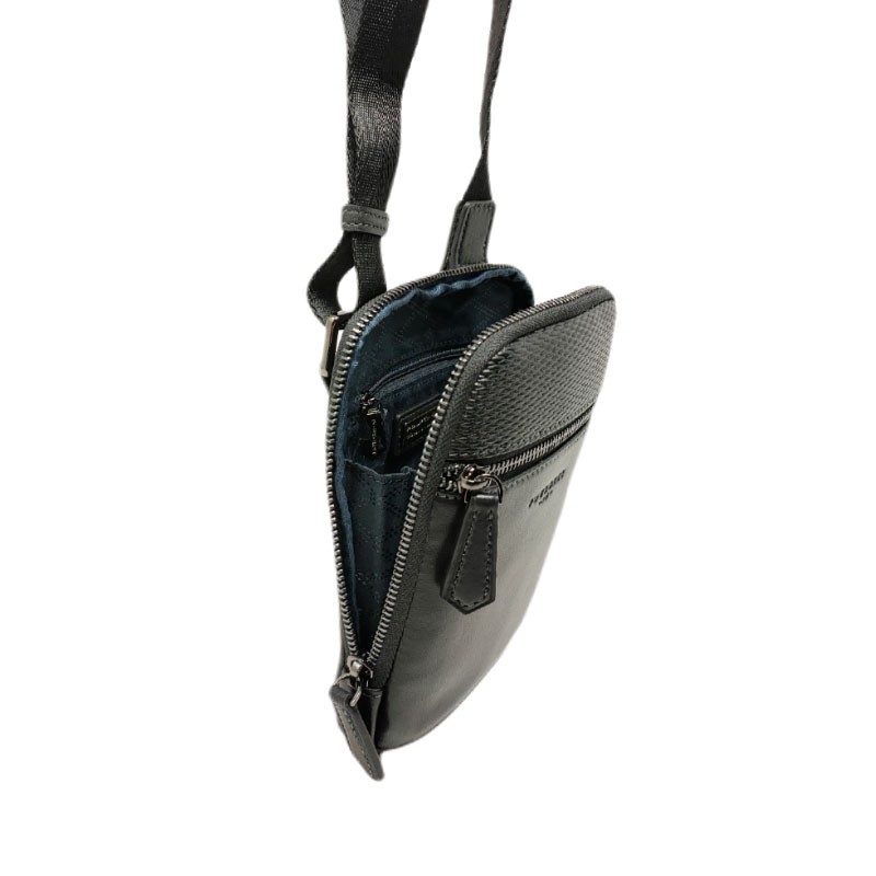 Cette petite sacoche ultra pratique fait partie de la ligne Homme. Elle est vraiment conçue pour un usage contemporain. Elle est très fine et de la taille d'un grand portefeuille. Ce sac pourra se faire discret sur votre silhouette et vos poches ne seront pas déformées. Une bandoulière permet de porter idéalement la sacoche en travers sous ou sur un vêtement. A l'intérieur se trouve une poche zippée plate et un emplacement plat. A l'avant vous trouvez également une poche zippée plate. La doublure en tissus logoté bleu nuit est très qualitative