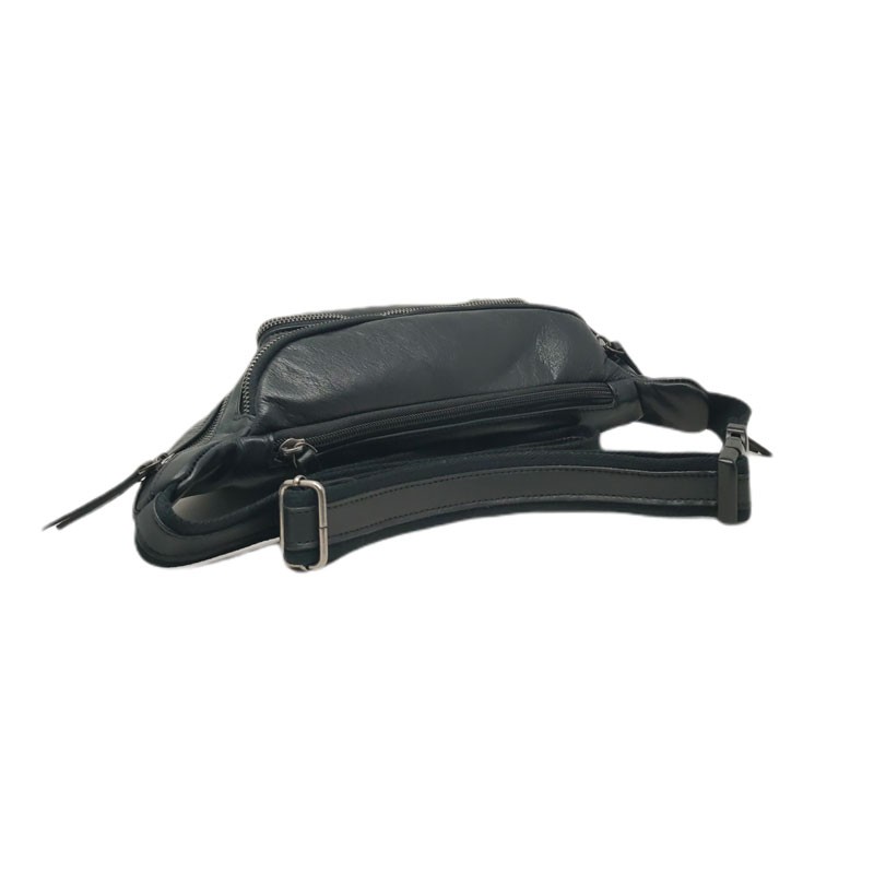 La ceinture est en toile et cuir. Elle est réglable par une boucle coulissante ce qui vous sera utile pour porter votre sac banane autour de la taille ou en travers sur le torse.