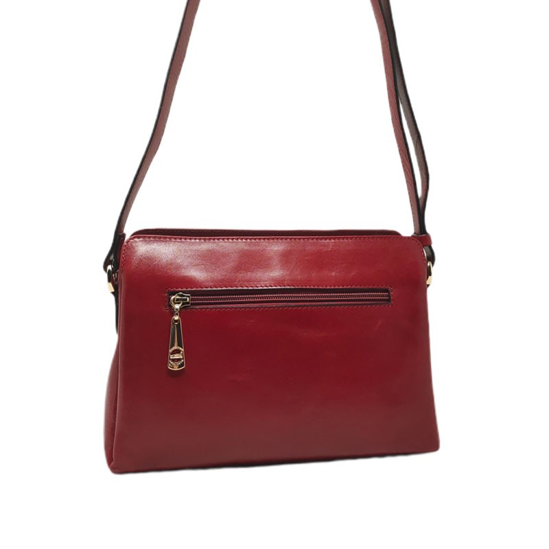 Le compartiment du milieu est plus grand que les deux autres . Il possède une poche plate zippée ainsi qu'un emplacement pour votre téléphone portable. Les compartiments qui se trouvent de chaque côté de celui-ci sont simples . Chéquier, mini parapluie, portefeuille, boitier lunette, porte-monnaie, clés, ... vous allez pouvoir tout y mettre dedans. Au dos de ce beau petit sac MARTA PONTI vous trouverez une poche plate qui ferme à l'aide d'un zip et ou vous pourrez mettre ce dont vous avez besoin d'attraper rapidement comme un titre de transport ou un ticket de parking.