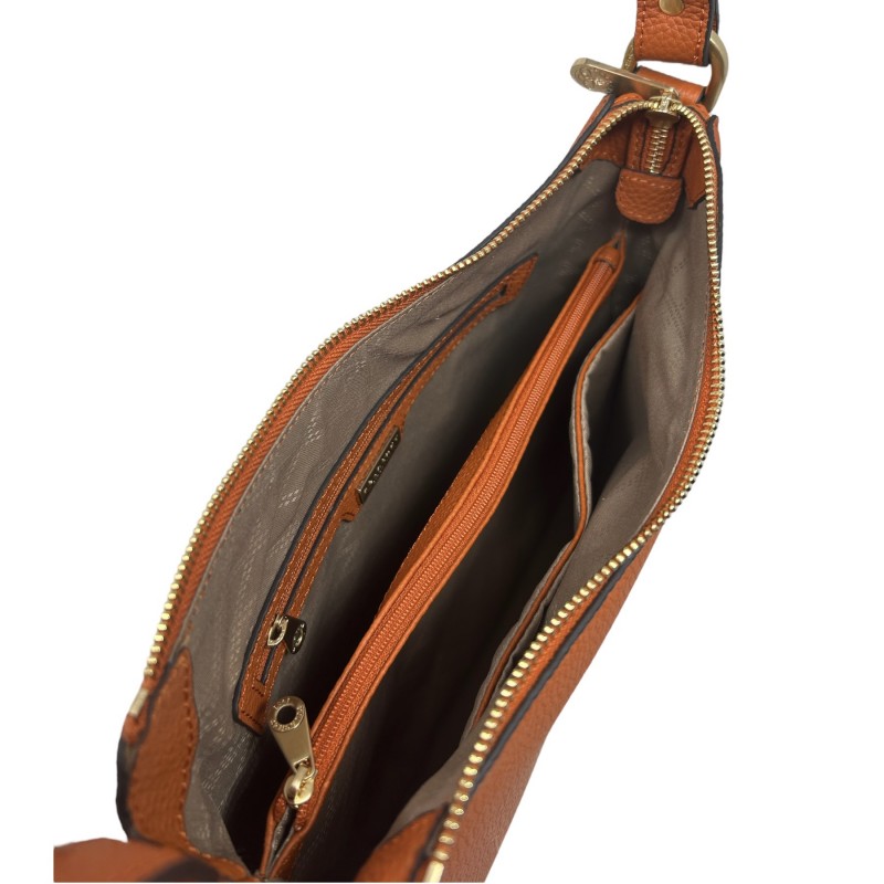 Bandoulière : La bandoulière est en cuir de vachette et réglable par une boucle coulissante