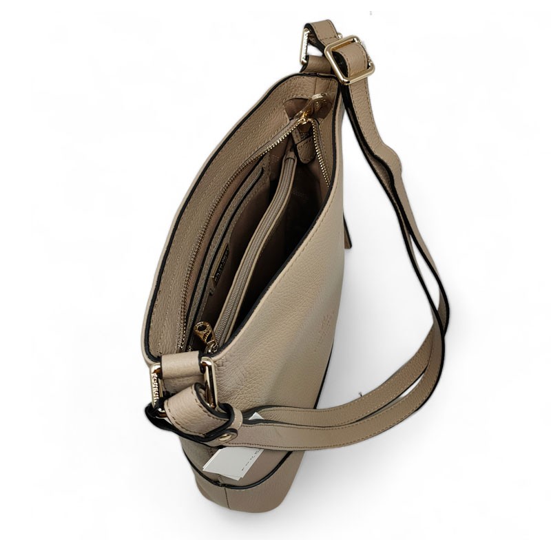 Dés son ouverture on découvre une poche principale sépare au centre d'un cloison zippée. De chaque côté se trouve un emplacement plat et une poche zippée. Un parapluie de 20cm trouvera sa place dans ce sac. Au dos du sac se trouve une poche zippée sécurisée.