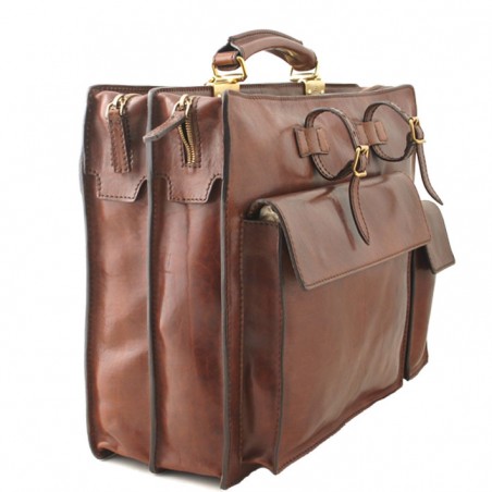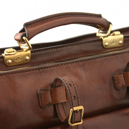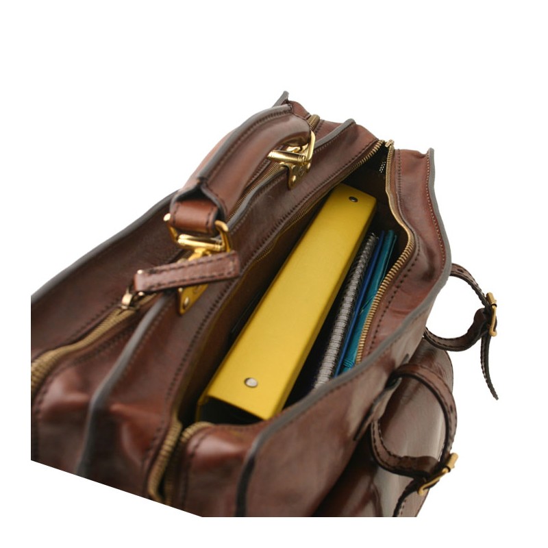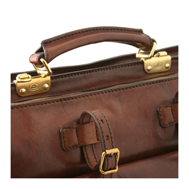 Cette serviette The Bridge a une forme très inédite, dite serviette à l'italienne. C'est le modèle phare qui a participé à la renommée du maroquinier Italien. Il est reconnaissable au montage de la poignée au milieu de deux compartiments plus ou moins larges.