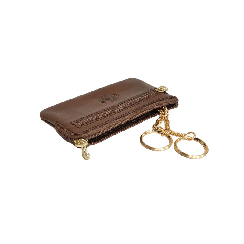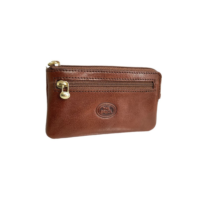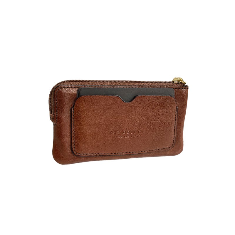 Le maroquinier Italien THE BRIDGE vous propose cet étui fabriqué en cuir de vachette de haute qualité. A l'intérieur vous découvrez deux anneaux pour vos clés. Une poche plate zippée à l'avant est pratique pour y mettre un peu de monnaie et un emplacement pour une carte au dos de l'étui.