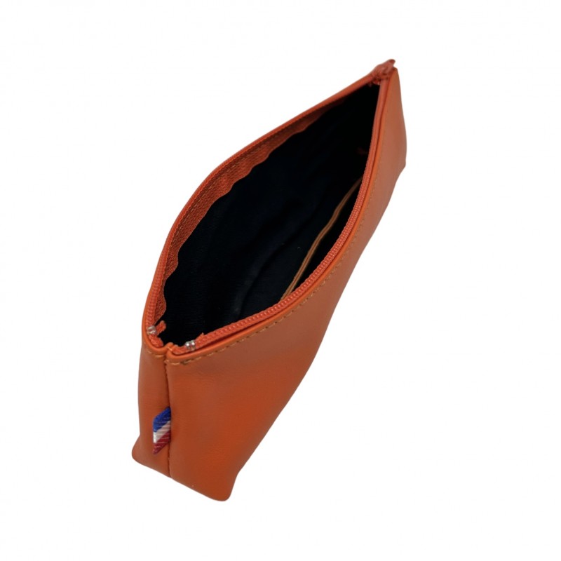 Le maroquinier FRANDI vous propose cette jolie trousse à crayons fabriquée dans un cuir de vachette pleine fleur .